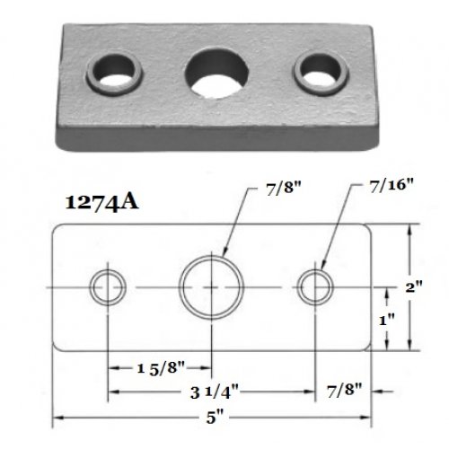 Fernstrum Heat Exchanger Zinc Anode 1274ALength: 5" Width: 2" Thickness: 13/16" Weight: 1.5 Lbs. Hol..